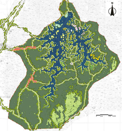 以中国古老的天文星宿文化为特色,引入本地文化内涵,延续阳江城市个性,构筑古镇民俗区、星海游览区、私人岛居区和星宿养生区四大分区,打造集生态岛居、浪漫度假、星宿养生、康体颐养等多功能于一体的国际湖泊岛居生态度假区。