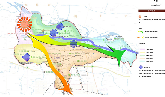 即:以绿为特色、水为内涵、黄河大堤为依托的生态休闲带。