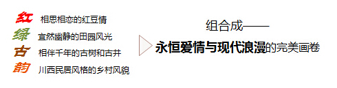 从千年红豆树衍生出相思和爱情文化,差异化发展,打造川西旅游环线上的旅游亮点 —— “中国婚庆第一村”品牌。