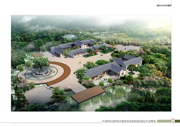 规划深入挖掘当地文脉,从千年红豆树衍生出爱情文化,为震后重建村落赋予具有当地特色和实体依托的个性文化。规划以爱情文化为切入点,做强做大婚庆旅游产业,将红豆村定位发展为“中国婚庆第一村”。
