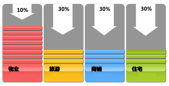 “3331”开发模式,即湿地公园的盈利来源主要包括旅游、商铺、住宅、物业,在开发盈利结构中,为确保各方利益的均衡、湿地公园自我造血机能和永续发展,尽可能将所占比例结构控制在3:3:3:1。