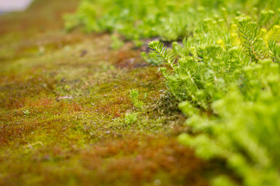 分别于拈花湾庭院、池边、溪畔、树下的苔藓,或许是最不起眼的,却是营造禅意最重要的因素之一。苔藓售空气、阳关、水分、土壤酸性等多种因素影响,很难大面积移植成活。拈花湾的苔藓是从临安、萧山、天目山、武夷山、湖州、吉安等自然生态极好的山区,经过严格选拔而来。专门设立一个苔藓基地,将入选的苔藓植入拈花湾的泥土。安排一位农学专家带领一个团队进行照料呵护。
