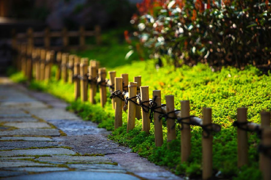 从国内到国外选择合适的工匠,经过选竹、分竹、烘竹、排竹,编制手法、竹节排布技巧、结绳技法……,简单的篱笆也是一个浩大的系统工程。 拈花湾普通的竹篱笆搭建共需使用二十九种标准工具,竹丝竹篱笆有四十三道标准工序。