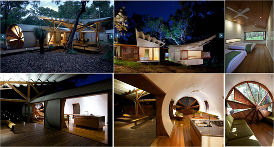 特色:是一个整体呈椭圆形、颇像坦克履带的小木屋,只需五天,它就可以快速的组装起来,而除了可以将它安装到树梢上作为豪华树屋以外,设计公司还可以按要求将内部重新设计和改进,以作为办公室、工作室或教室等使用。