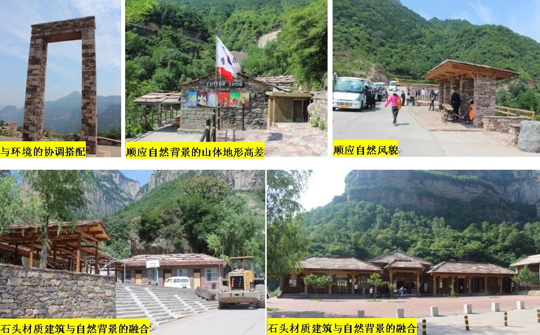 设计元素应该顺从于自然,来源于自然。在自然风景优美的景区,景观具有明显的视觉质量和审美特征,景区建筑更应该从环境风貌出发,不仅有利于景区的生态保护且有利于旅游景点个性塑造。
